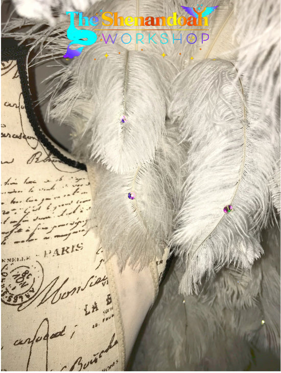 Rooster and duck Feathers, Adorned With Swarovski Crystals