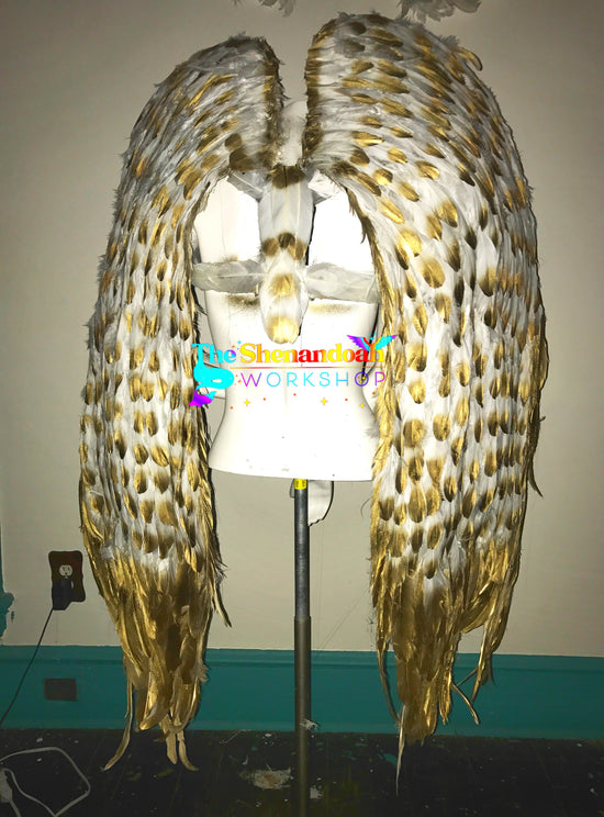 (Angel Wings: Always handle with clean hands, as oil tranfers to natural feathers.)