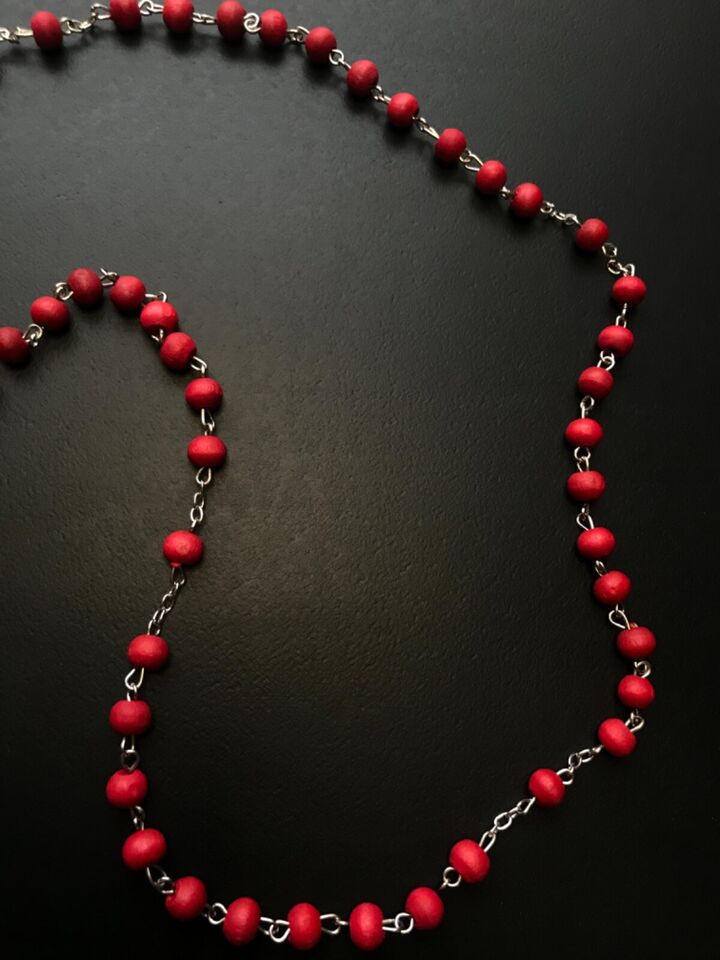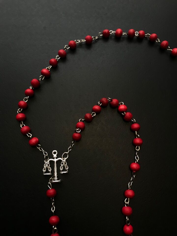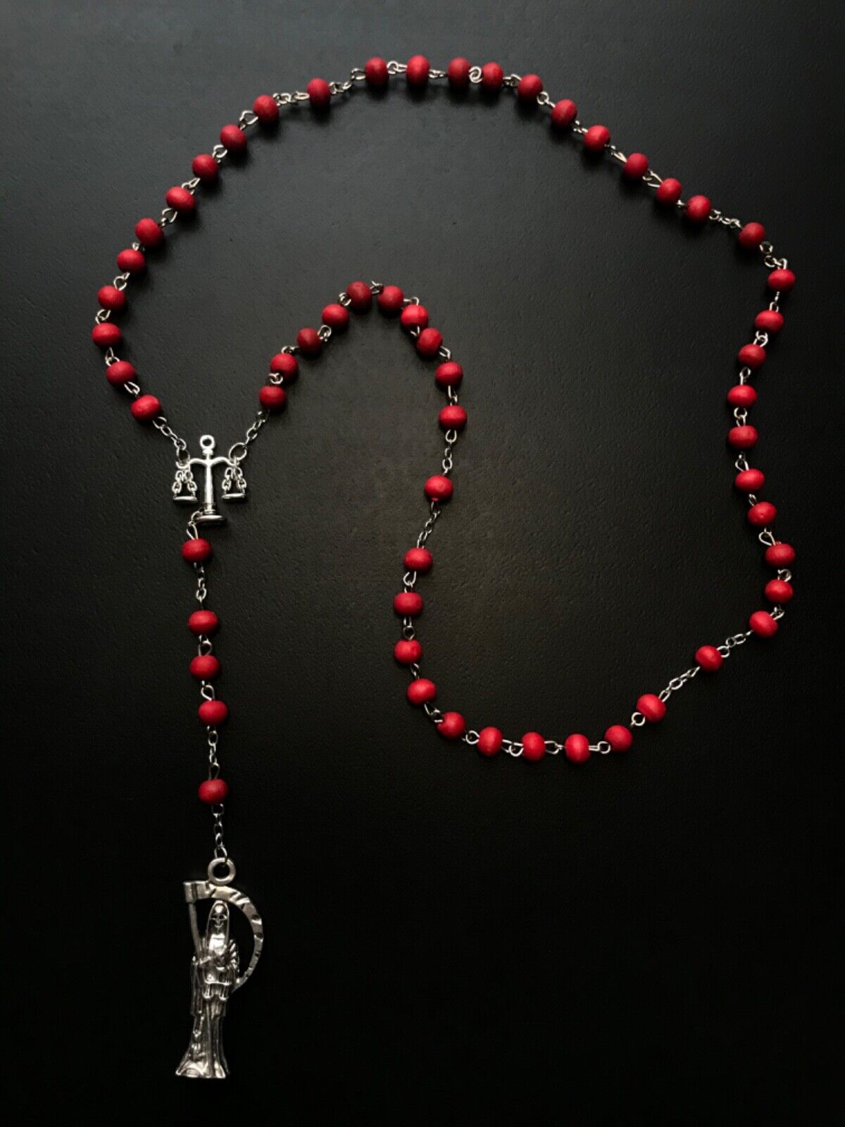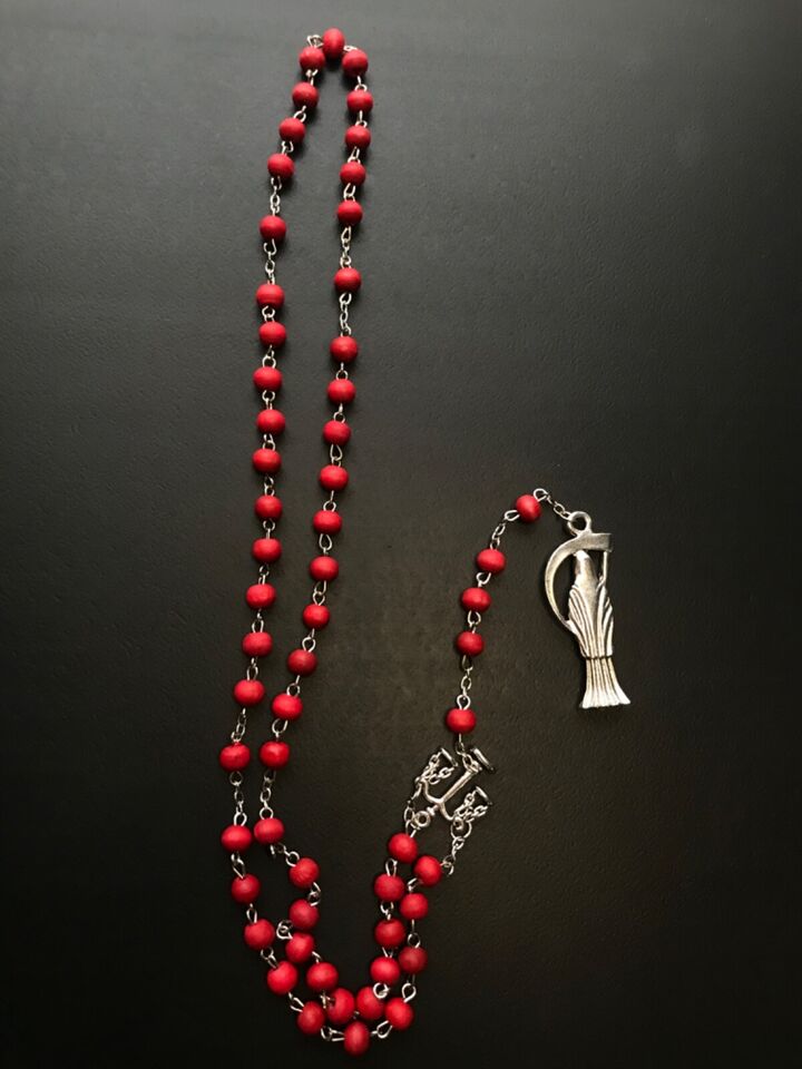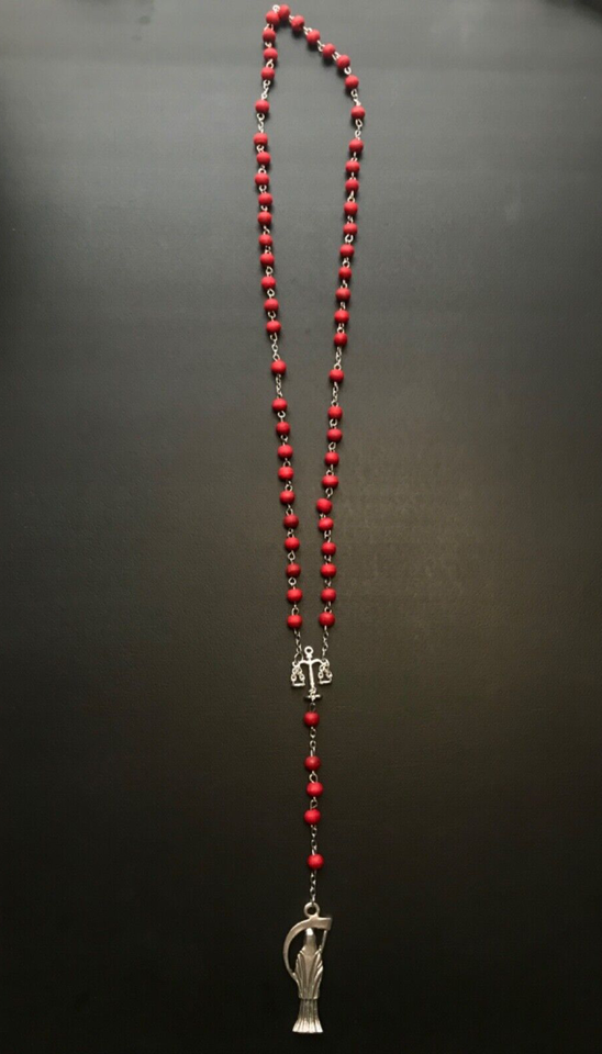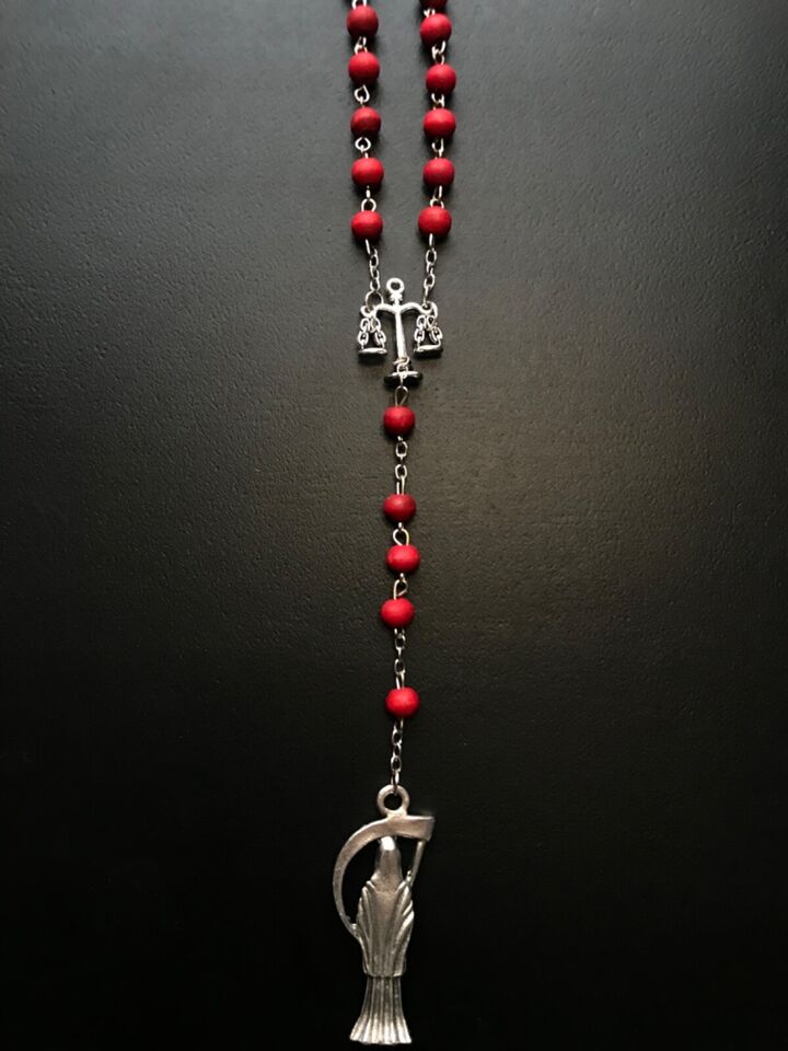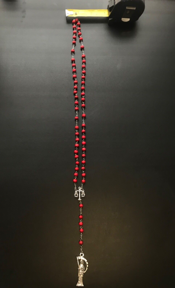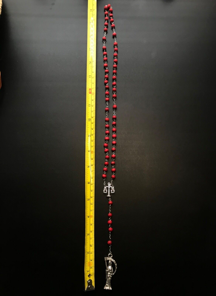Santa Muerte Rosary / Red wood beads/ Rose scented / Handmade! / FREE SHIPPING!)